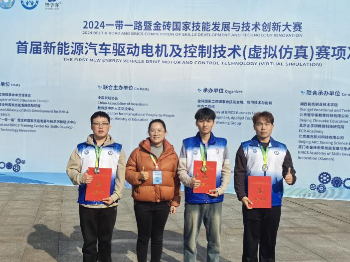 12月1日,2024一带一路暨金砖国家技能发展与技术创新大赛首届新能源汽车驱动电机及控制技术(虚拟仿真)赛项决赛落下帷幕,澳门pg官方电子平台的师生团队凭借扎实的专业技能和出色的赛场表现,在全国119支参赛队伍中脱颖而出,成功斩获一等奖一项,二等奖两项的优异成绩。