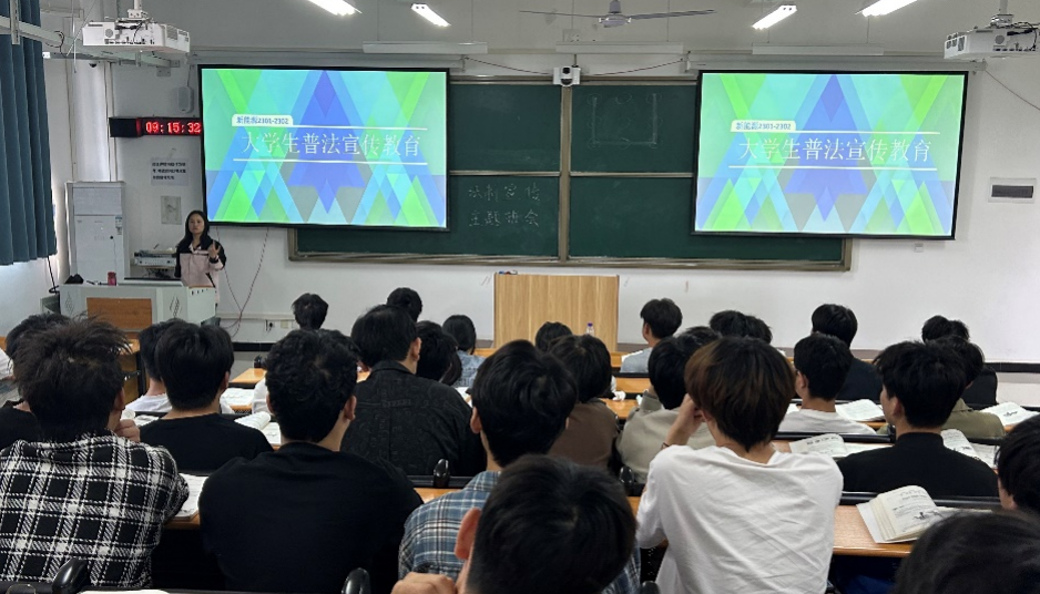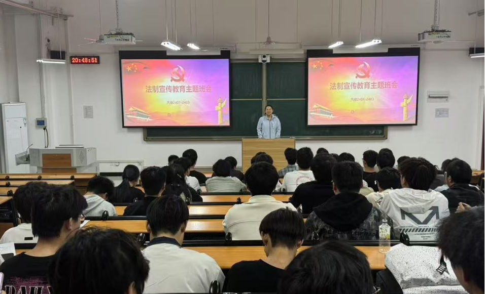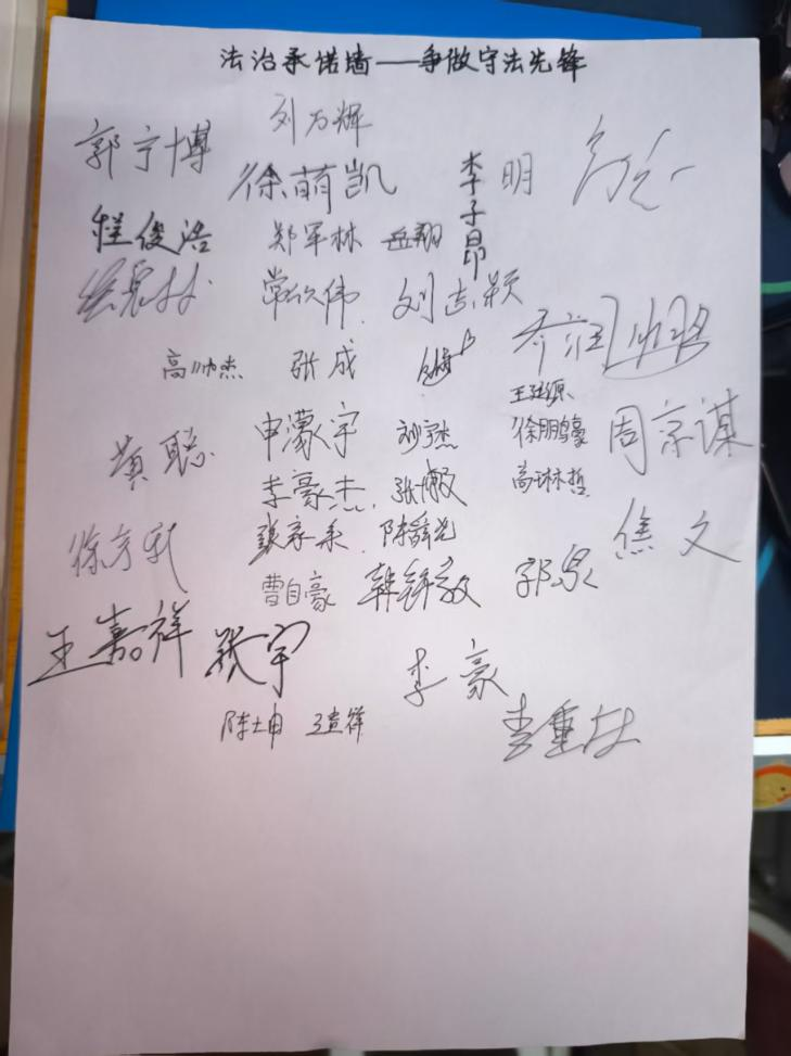 在新能源2024级的班会上,王亚楠老师还在活动环节中设置了“法治承诺墙”,同学们郑重签下“争做守法先锋”誓言。辅导员倡议大家争做“法律宣传员”,将法治精神传递到家庭和社会。此次班会既是一次普法教育,更是一场心灵洗礼,为构建平安和谐校园注入法治正能量。