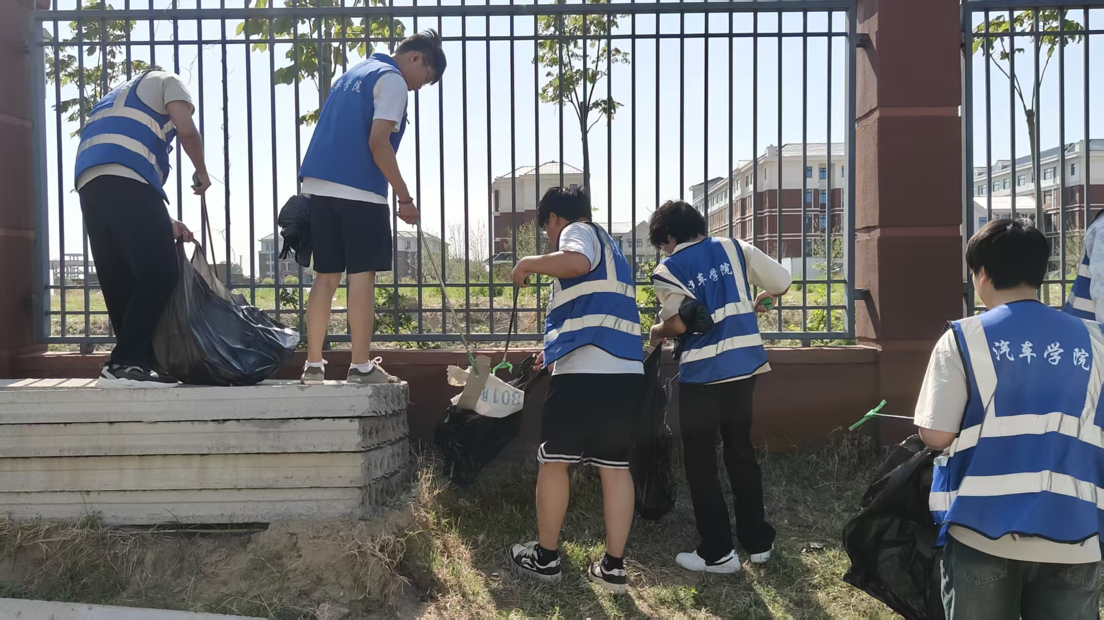 当天,澳门pg官方电子平台师生在学校外侧围墙手持各式劳动工具,展开大“清洗”。从下午三点到五点,志愿者们分工协作,打扫所划分的区域,把里面所有的塑料袋,橡胶制品,纸屑等一一处理。刚开始,志愿者还在抱怨天气的炎热,但随着活动的不断深入,大家越干越起劲,正所谓众人拾柴火焰高经过两个小时的劳动,清理垃圾达7个大垃圾袋。外侧围墙环境焕然一新。